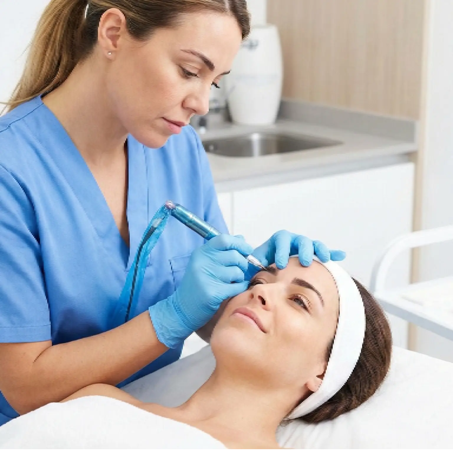 The procedure requires extreme precision - each hair must be placed at the correct angle (10-15 degrees) and direction to create natural-looking eyebrows. We use the golden ratio principles to design eyebrows that complement your facial features.